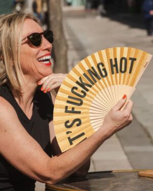 ABANICO IT`S FUCKING HOT. CON GLITTER DORADO