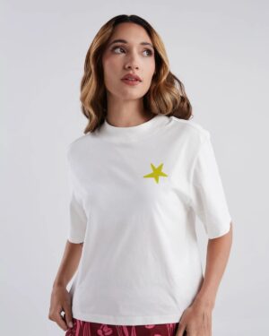 Camiseta Cali Marfil Confeccionada en algodón puro, esta camiseta marfil es tu aliada perfecta para cualquier ocasión—fresca, cómoda y fácil de combinar con tus prendas favoritas. Su diseño versátil te permite crear looks sofisticados tanto para el día como para la noche.