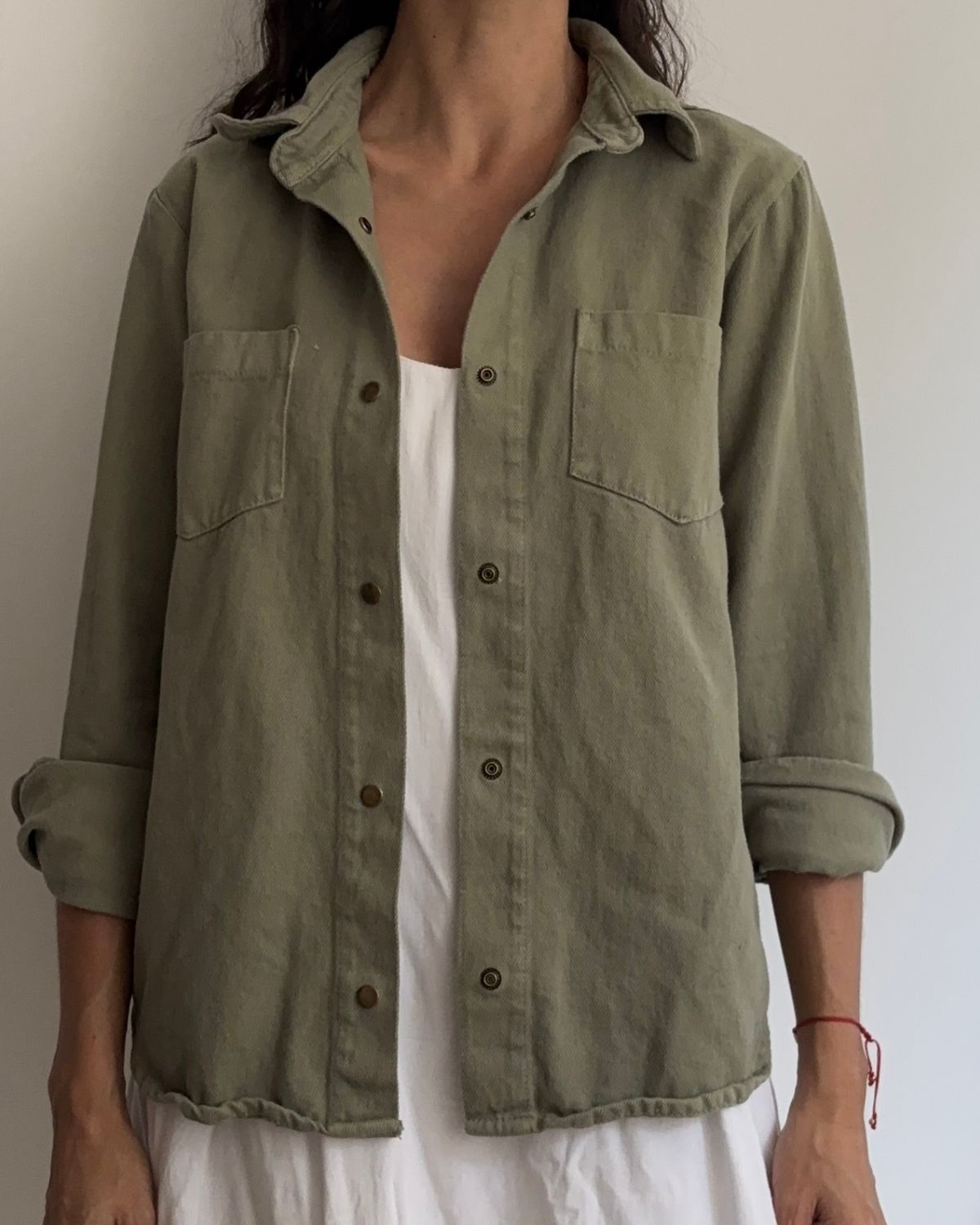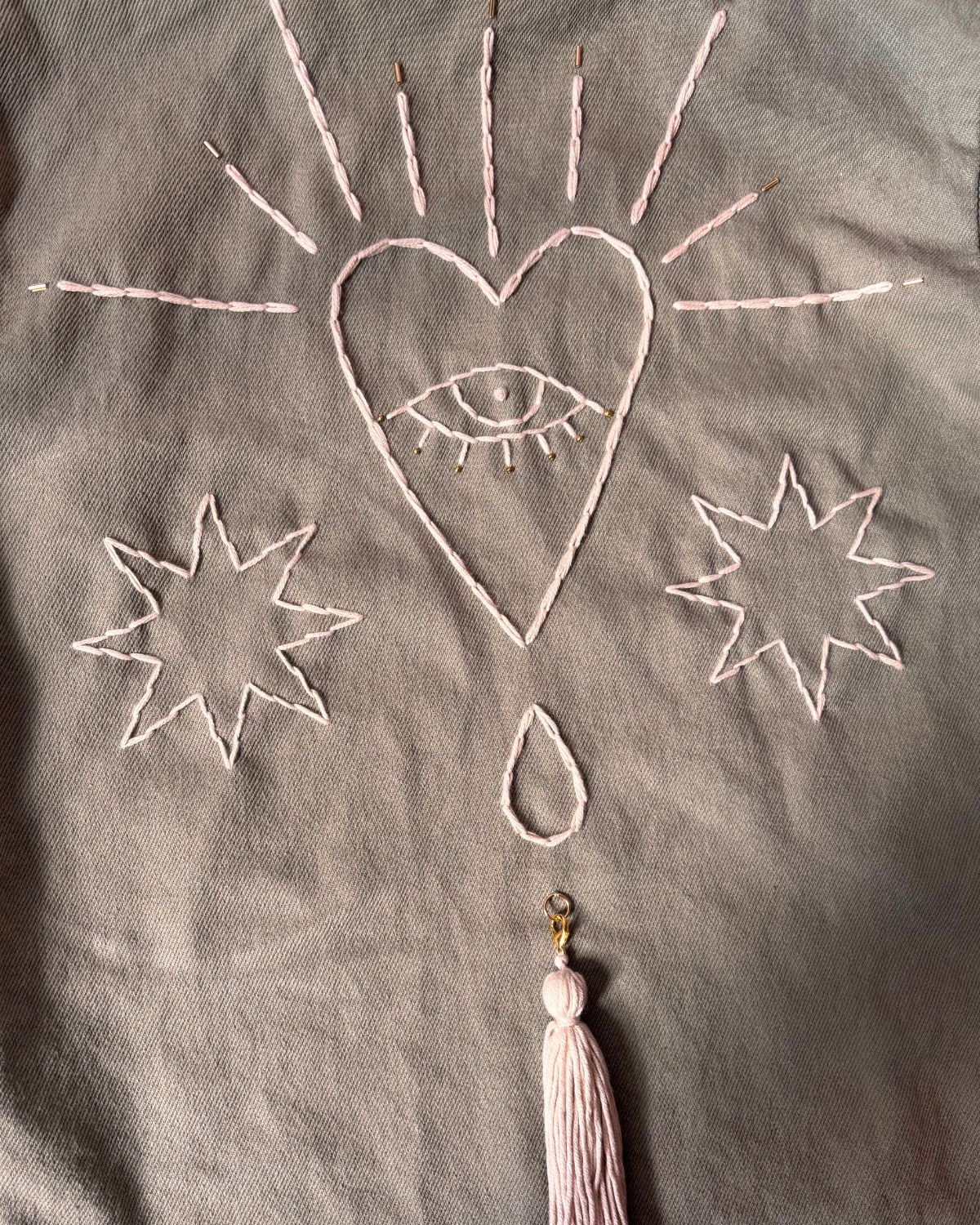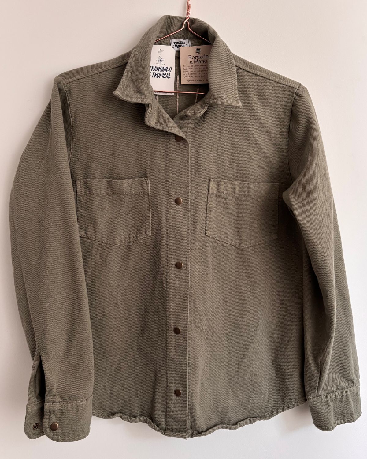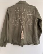 Chaqueta verde en denim bordada a mano.