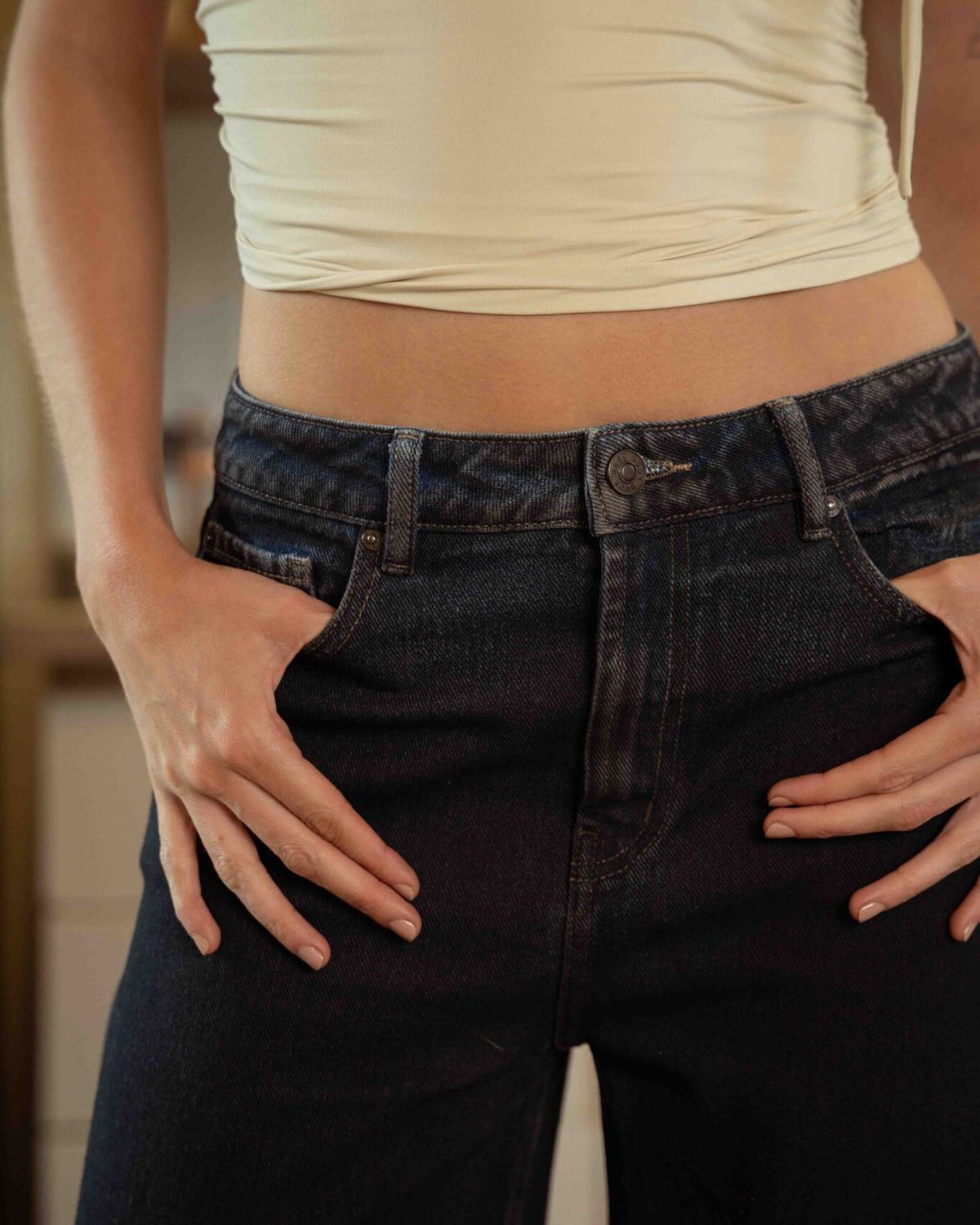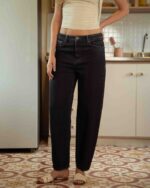 LOW RISE DARK BLUE BARREL JEAN
