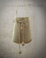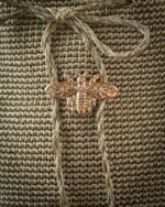 Esta mochila se elabora en hilos metalizados acompañada por  nuestra Abeja evocando tradición , dulzura y fuerza femenina. Terminados en piedra de Murano.