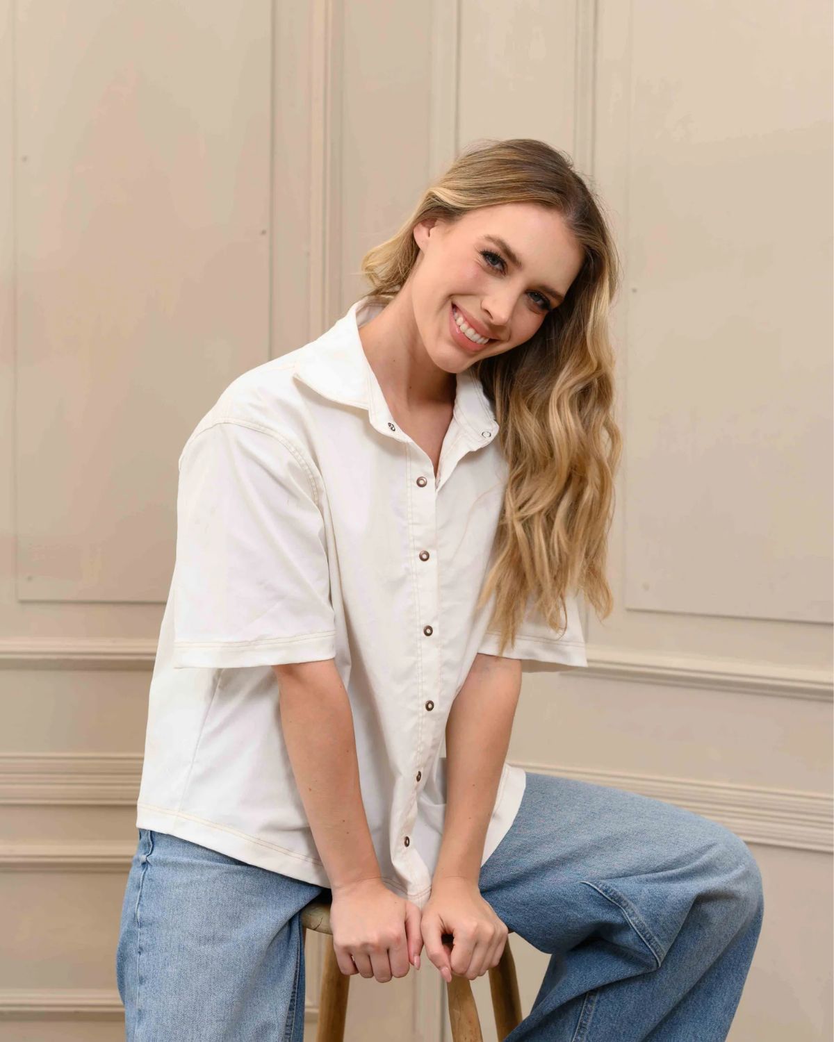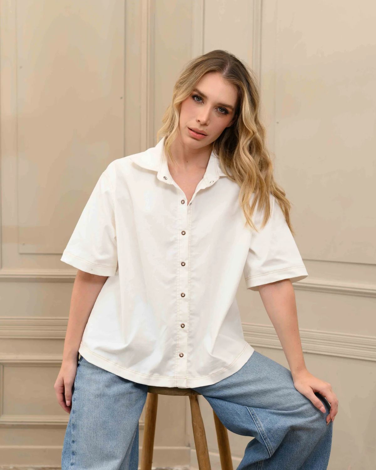 La camisa Owala Print presenta un corte oversize boxy que ofrece comodidad y un estilo moderno. Confeccionada en una mezcla premium de 59% algodón, 38% poliéster y 3% elastano, brinda suavidad, durabilidad y un ligero stretch para mayor libertad de movimiento. Su diseño con broche añade un detalle elegante que realza la versatilidad de esta prenda, ideal para quienes buscan una pieza sofisticada y cómoda en su guardarropa.